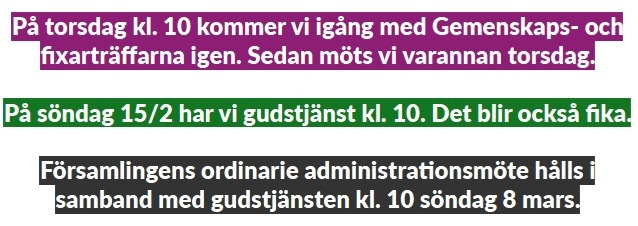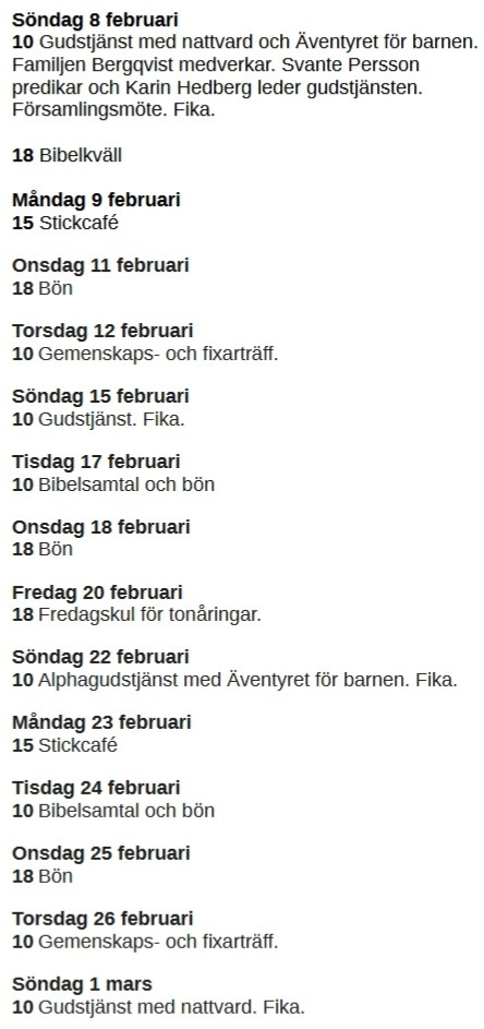 Vi har en bibelläsningsplan som du gärna får ta del av. Du hittar den om du klickar här. Den som är aktuell nu gäller för vintern - våren 2025 - 2026.